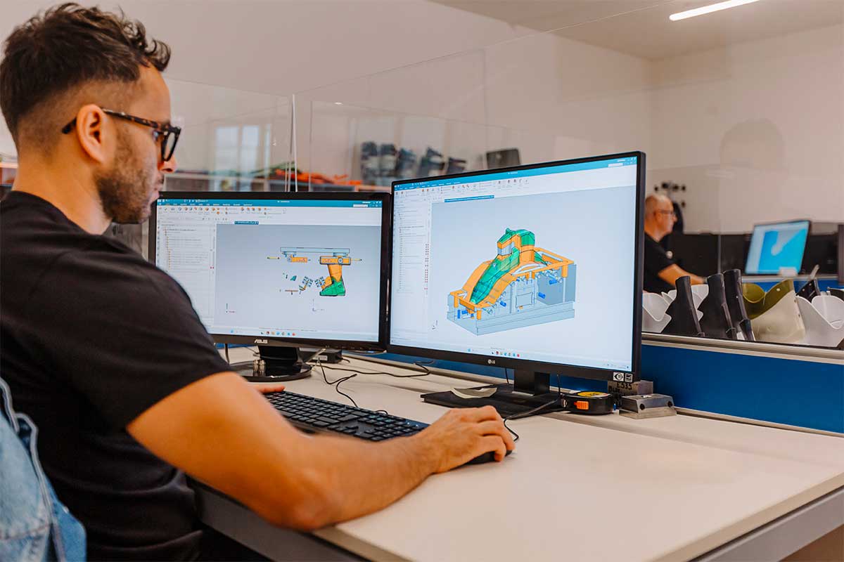 La produzione degli stampi per materie plastiche deriva da un’attenta progettazione. Sviluppiamo soluzioni personalizzate, partendo da un foglio bianco o trasformando le idee in realtà. Possiamo lavorare sulla base del disegno fornito dal cliente così come in reverse engineering. Il nostro reparto tecnico conta ben 12 addetti: integriamo software CAD/CAM per una progettazione efficiente, e per rendere veloci e accurate le successive fasi di produzione. La competenza dei nostri tecnici e il dialogo costante con il cliente ci permettono di sviluppare in tempi brevi stampi per materie plastiche dagli elevati standard di efficienza e durata.
